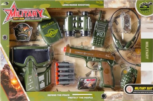 Zalety produktu: rozbudza kreatywność dziecka. Czas przygotować Bazę Wojskową na ochronę przed najazdem wrogów. Zabawa Zestawem Wojskowym MEGA CREATIVE dostarczy każdemu dziecku sporą dawkę dobrej zabawy! Zawartość zestawu: pistolet, maska, lornetka, granat, krótkofalówka, 5x pociski piankowe, odznaka, menażka, słuchawki + mikrofon. Całość wykonana z plastiku. Wymiary/waga/baterie: wymiary produktu (dł. x wys. x gł.) [cm]:-pistolet 20x13x3 , waga produktu bez opakowania [kg]: 0,40 kg, wymiary opakowania (dł. x wys. x gł.) [cm] 52x33x6,waga produktu w opakowaniu [kg]: 0,56 kg, nie wymaga zasilania bateriami. Zabawka przeznaczona dla dzieci w wieku: 3+. Pakowana w kartonik z okienkiem. W kartonie zbiorczym po 12/24 szt.