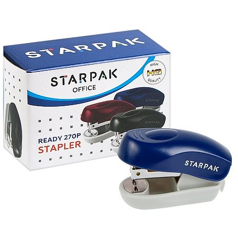 Zszywacz z kolekcji Starpak dedykowanej dla szkoły i biura. Kieszonkowy zszywacz o nowoczesnym designie. Zszywa jednorazowo do 8 kartek gramatury 80 g/m2. Do zszywacza należy stosować zszywki No. 24/6 - 26/6. Magazynek mieści 50 zszywek. Głębokość zszywania - 23 mm. Zapoznaj się również z innymi produktami Starpak dedykowanymi dla szkoły i biura Produkt nieodpowiedni dla dzieci poniżej 3 roku życia. Pakowany w kartonowe pudełeczko. Wykonany z metalu oraz plastiku. W kolorze granatowym.